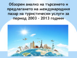 Обзорен анализ на търсенето и предлагането на туристически услуги за периода 2003 - 2013 години...