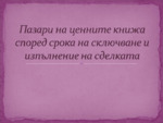 Пазари на ценните книжа според срока на сключване и изпълнение на сделката