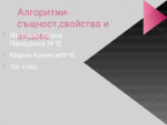 Същност на алгоритмите.Това е крайна последователност от елементарни действия, които извършваме върху входни данни с цел решаване на задача...