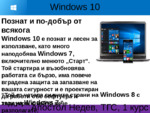 Windows 10 е познат и лесен за използване, като много наподобява Windows 7, включително менюто "Старт". Той стартира и възобновява работата си бързо, има повече вградена защита за запазване на вашата с сигурност и е проектиран да работи със софтуера и..