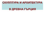Архаичната скулптура се поява през 7 в. пр. Хр. в Крит (статуи и релефи, силно повлияни от скулптурата на Ориента); бързо разпространение в цяла Елада (възникване на коринтска, самоска и други скулптурни школи)...