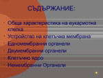 Еукариотните клетки изграждат едноклетъчните и многоклетъчните растения, животни и гъби. По принцип те са много по - големи (хиляди пъти) от прокариотните...