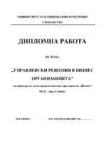 Управленски решения в бизнес организацията (на примера на млекопреработвателно предприятие "Йотови" ООД – град Сливен)