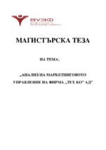 Обект на изследване в магистърската теза – фирма „Тех Ко” АД, докато предмет в изследването са маркетинговото управление на Компанията – същност, видове, значение, постигане на фирмена ефективност и пазарна конкурентоспособност....