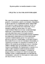 Под средства за масова комуникация се подразбират радиото, телевизията, киното, вестниците, списанията и други средства за съобщаване между хората.Чрез тези средства хората общуват помежду си, без да встъпват в...