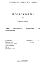 Протокол по електротехника на тема "Електрическо напрежение, ток, съпротивление"...
