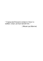 Есе по етика и право за 10 клас върху мисълта на Мишел дьо Монтен "Според мен Римската империя е била по-храбра преди да бъде просветена"...