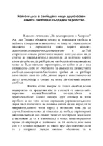 В своето съчинение „За демокрацията в Америка” Ал. дьо Токвил обхваща темата за човешката свобода и нейните измерения в зависимост от вида на управлението наложено в държавата, в която хората живеят - деспотично, монархично, демократично...