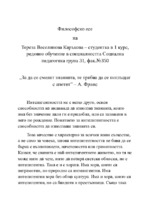 Това е есето, с което кандидатствах във ВСУ "Черноризец Храбър" и бях приета с оценка 5.75...