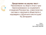 Представяне на научен текст – “Присвояване на общото благо чрез персонализиране на социалните отношения.Познанства, клиентелистка система и корупция в обществата с недоверие в публичните институции.” Кр.Джордано...