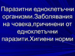 Паразитни едноклетъчни организми. Заболявания на човека, причинени от едноклетъчни паразити. Хигиени норми.