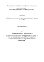 Принципи на човешките взаимоотношения при работа с деца в подготвителна група на детската градина