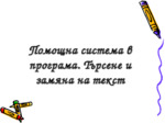 Помощна система в програма. Търсене и замяна на текст