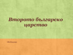 Обобщителна презентация за 5 клас на раздел "Второто българско царство". Всички уроци са представени с помощта на малки планове...