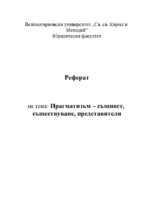 Прагматизмът е течение във философията, датиращо от втората поло-вина на ХIХ век, възникнало и получило най-широко разпространение в САЩ. Думата прагматизъм произлиза от гръцката дума „прагма”, която озна-чава акт, действие, дело...