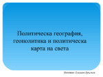 Разработената презентация на тема "Политическа география, геополитика и политическа карта на света” е предназначена за изнасяне в час по география и икономика в 10 клас...