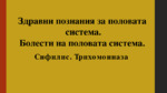 Презентацията е за здравните познания на половата система, както така са описани и 2 от болестите на половата система - сифилис и трихомониаза...