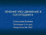 Материялът се казва Лечение чрез движение в логопедията с под заглавие дихателна и фонационна терапия при нарушения на артикулацията....