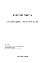 Същност и определение на финансовите пазари в увода. В основната си част съдържа класификация и функции на финансовите пазари...