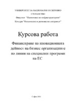 Финансиране на иновационната дейност на бизнес организациите по линия на специални програми на ЕС