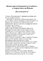 Негативното отношение на Йовков във войната като виц за човека и нейното отрицание в „последна радост” са изразени чрез описанието на мирния живот в едно провинционно градче и описаната атмосфера във войната на втората част на разказа
