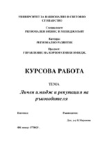 В настоящата курсова задача ще разгледам теоретичните аспекти на понятията имидж и репутация. В първата част ще представя определенията на понятието имидж и ще дам насоки как той се гради...