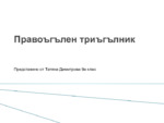 Във прзентацията са включени елементите на правоъгълния триъгълни, Питагоровата теорема и обратна Питагорова теорема....