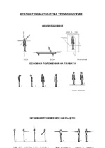 Кратка гимнастическа терминология, оси и равнини, основни положения на главата, основни положения на ръцете, основни положения на краката, напади, основни положения на трупа, стоежи...