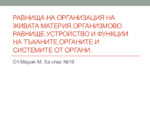 Равнища на организация на живата материя. Организмово равнище. Устройство и функции на тъканите, органите и системите от органи