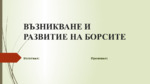Презентацията е свързана с цялата история за борсите. Историята на борсата е свързана с възникването и развитието на пазарните отношения. Терминът “борса” за първи път се появява през късното средновековие (13-14 век) в град Брюж...