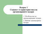 Същност и характеристика на организираните пазари: 1. Особености на организираните пазари. 2. Видове организирани пазари...