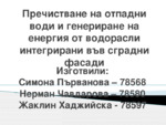 Кои сме ние? Какви са нашите цели? Иновативност и ефективност във водопречистването. Получаване на енергия, която да задоволи нуждите на потребителите в сградата...
