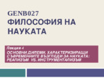 основни дилеми, характеризиращи съвременните възгледи за науката: реализъм срещу инструментализъм...