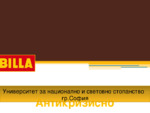 Презентацията е на тема Антикризисно управление на "Билла-България"ЕООД. Съдържа описание на фирмата, кризисни ситуации, антикризисни мерки и действия и др....