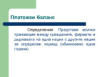 Презентацията е относно същността на платежния баланс и информация за платежния баланс на България...