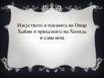 Изкуството в поезията на Омар Хайям и приказките на Хиляда и една нощ