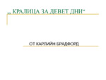 Презентацията е доста дълга за да може да се опише по-изчерпателно за Карлийн Брадфорд. Много хубав роман за деца с исторически и морални истини...