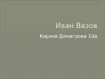 Иван Вазов е поет, писател и драматург, наричан често "патриарх на българската литература". Творчеството на Вазов е отражение на две исторически епохи...