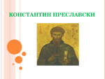 Константин Преславски е книжовник, който доразвива Кироло-Методиевото дело и организира българския духовен живот в тогавашната столица на България – Преслав – през т.нр. "Златен век на българската култура"...