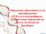 PCR и гел-електрофореза, метод на Брадфорд и ефективност на трансформацията. Трансформацията е процес на приемане на ДНК от бактериални клетки. Повечето видове бактерии притежават способността да приемат ДНК от средата, в която се развиват...