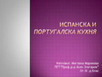 В презентацията са представени испанската и португалската кухня. Описани са характерни ястия както и продукти, които се използват в съответната кухня....