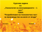 Презентацията включва разработена курсова задача по предмета - Технология на консервирането...