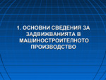 Основни сведения за задвижванията в машиностроителното производство. Задвижванията имат за задача да осигурят необходимите условия за изпълнението на технологични процеси...