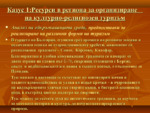 Планиране и подготовка на програмата; маркетинг на програмата; реализация и администриране на програмата; провеждане на пътуването и оценка на програмата...
