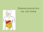 Презентацията обхваща всички отдели на храносмилателната система. Предназначена е за ученици от осми клас и всички, които изучават анатомия на човека. В началото има две задачи за преговор на видове хранителни вещества и храните, които ги съдържат...