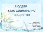 Учебна презентация, подходяща за ученици от 8-ми до 10-ти клас на тема "Вода" по предмета Химия...
