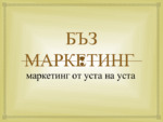 Представя цялостната идея за бъзз маркетинга, сравнение с други маркетинг техники. Има и анализ....