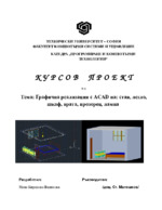 Разработения проект е направен с помоща на софтуерното приложение AutoCAD. Използвани са различни примитиви, като: линии, полилинии, окръжности, дъги и други за създаването на обектите. Мебелите са разположени във виртуална стая...