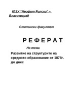 Развитие на структурите на средното образование от 1878г. до днес