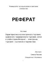 Характеристика на електронната търговия, сравнение с традиционната търговия, силни и слаби страни. Интернет – електронна търговия – състояние и перспективи...